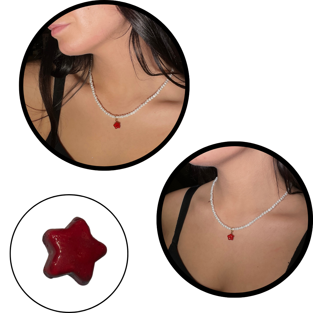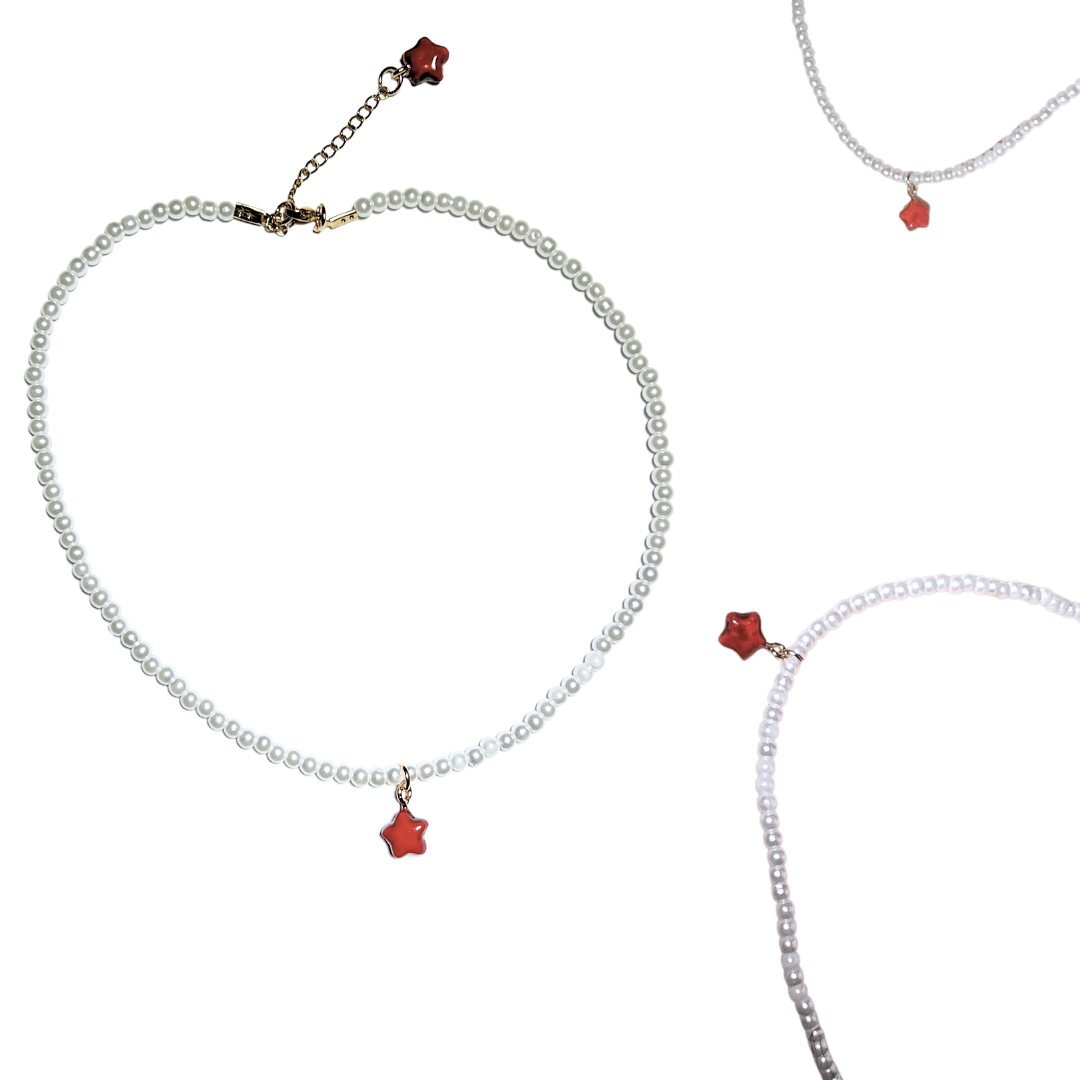 Lil Star Lil Pearl – delikatny i uroczy naszyjnik stworzony z małych szklanych pereł o średnicy 4 mm. Zawieszka w kształcie czerwonej gwiazdki dodaje charakteru i subtelnego uroku. Wykonany ręcznie, z trwałym zapięciem i regulacją długości ze stali nierdzewnej. Idealny dodatek do codziennych i eleganckich stylizacji.