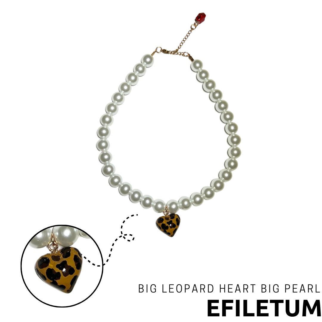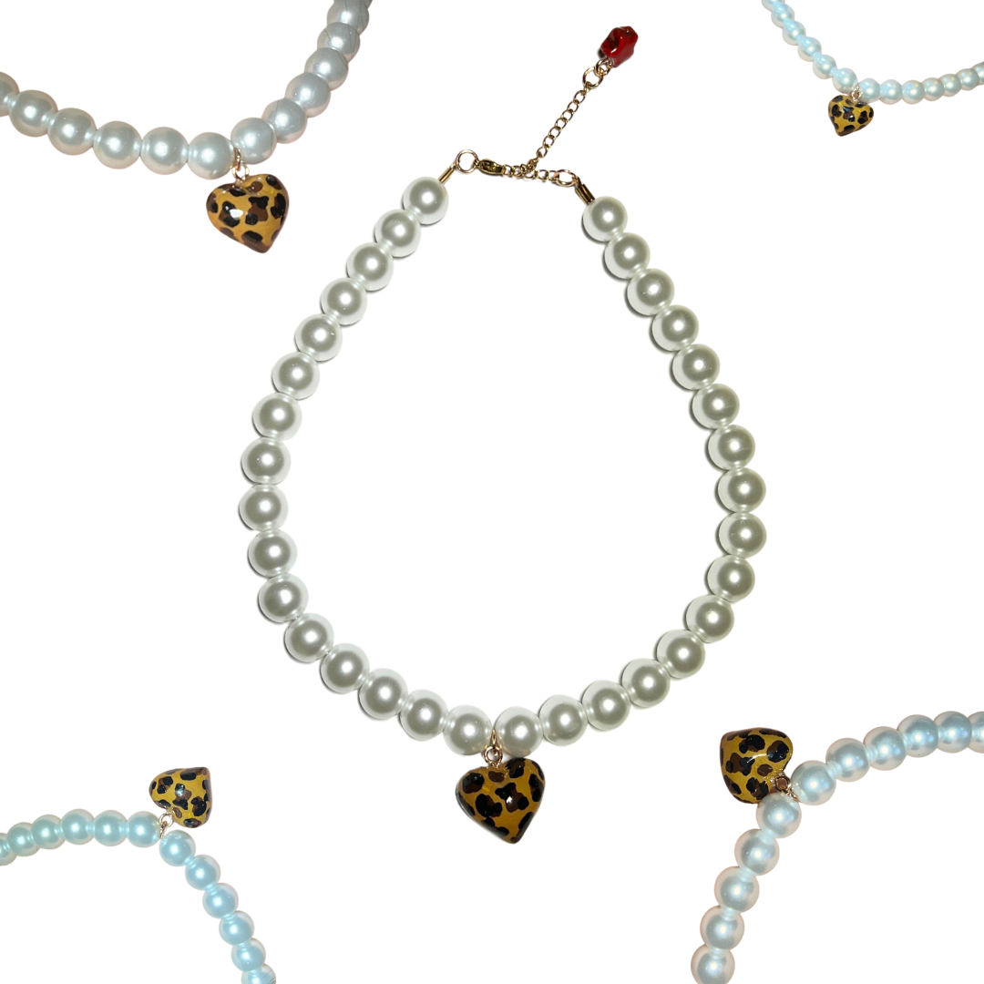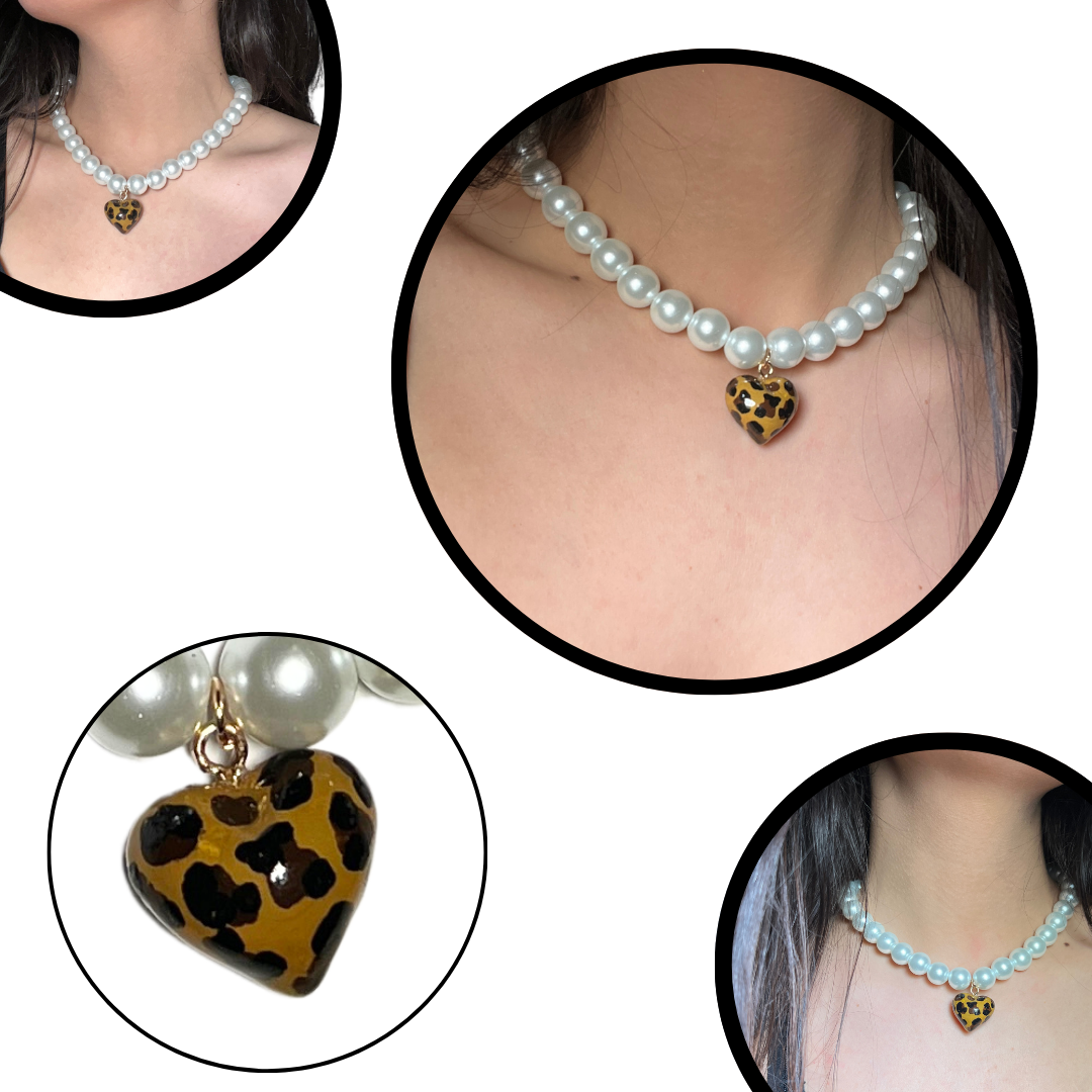 NASZYJNIK Z DUŻYCH PEREŁ Z DUŻYM SERCEM PANTERKA